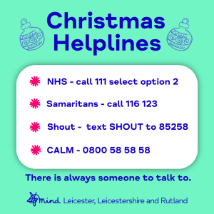 If you’re struggling, please remember there is always someone to talk to, please Check the Christmas helpline details. If you are in immediate danger or at risk, please call 999.